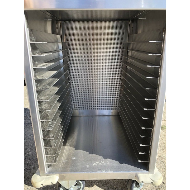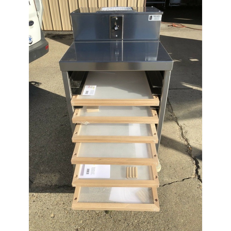 SANI-CHEF MFG PASTA DRYER UNIT IS 120V POWER. THIS PASTA DRYER COMES EQUIPPED WITH A 13 NON-ADJUSTABLE SHELVES THAT FIT PADERNO PASTA DRYING SHEETS MODEL# A4982240 OR SIMILAR. THE UNIT HAS A BUILT IN FAN THAT IS CONNECTED TO A SPEED CONTROL STAT AND INCLUDES A MESH AIR FILTER LOCATED AT THE TOP OF TH UNIT. THE AIR FLOW WILL RUN DOWN THE REAR OF THE UNIT AND OUT THROUGH PERFORATED METAL BACKING TO EVENLY DRY PASTA SHEETS ON THE SHELVING. UNIT IS EQUIPPED WITH 5" CASTERS WITH LOCKING BRAKES. NOTE: AN ADDITIONAL HEATING OPTION W/ DOOR CAN BE ADDED FOR $1,300 |