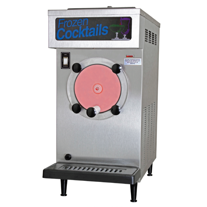 Frozen Cocktail/Beverage Freezer, counter model, air or water cooled, self-contained refrigeration, 1 head, 25 qt. evap. & refrig. mix capacity, welded steel frame, stainless steel exterior, automatic torque control, auto. visual mix out system, 1/2 HP dasher, 3/4 HP compressor, UL, NSF & cUL