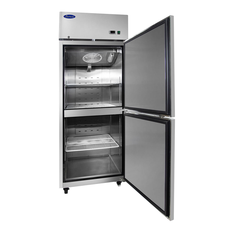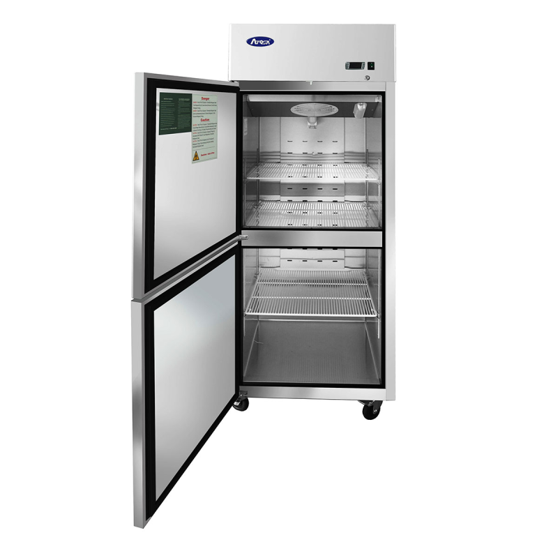 Atosa Refrigerator, reach-in, one-section, 28.74"W x 33.27"D x 82.89"H, top mount self-contained refrigeration, 21.4 cu. ft., (1) locking hinged solid half-doors, digital temperature control, 33° to 45°F temperature range, (3) adjustable shelves, interior lighting, automatic evaporation, air defrost, stainless steel interior & exterior, galvanized steel back, 4" casters, R290 Hydrocarbon refrigerant, 1/6 HP, 115v/60/1-ph, 4 amps, cETLus, ETL-Sanitation, ENERGY STAR®
