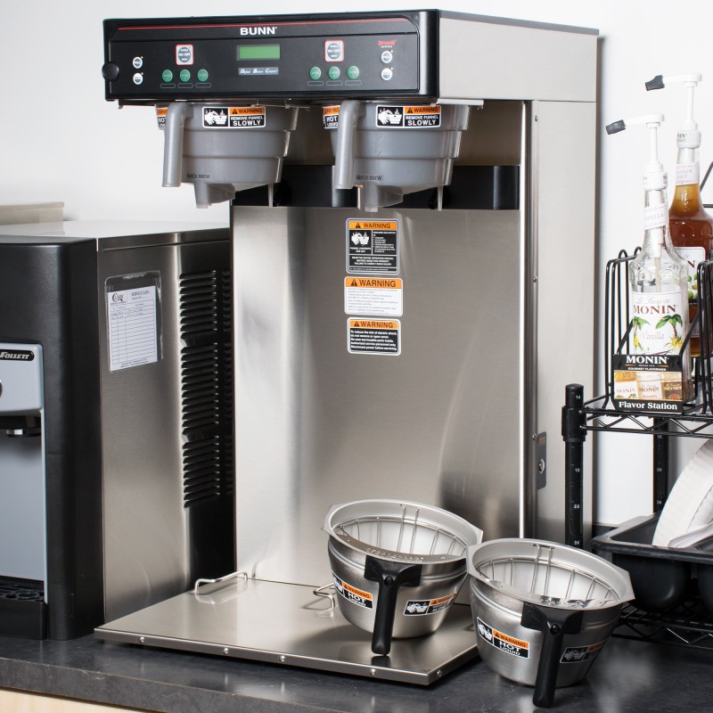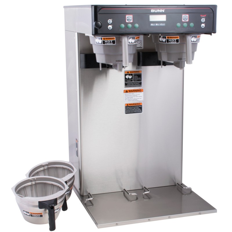 Always have a steady supply of piping hot coffee or refreshing iced tea on hand thanks to the Bunn 43100.0000 ITCB-Twin HV infusion series twin high volume brewer! This unit features a large 5.5 gallon tank so you can brew multiple batches of tea and coffee back to back, up to 18.9 gallons of coffee per hour or 26.7 gallons of iced tea per hour. It brews into 1.0 and 1.5 gallon Bunn ThermoFresh coffee servers (not included) as well as TD4T, TDO, and TDO-N tea dispensers (not included). You can even specifically brew iced coffee with the unit's dilution feature!