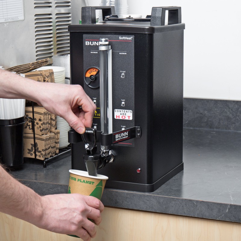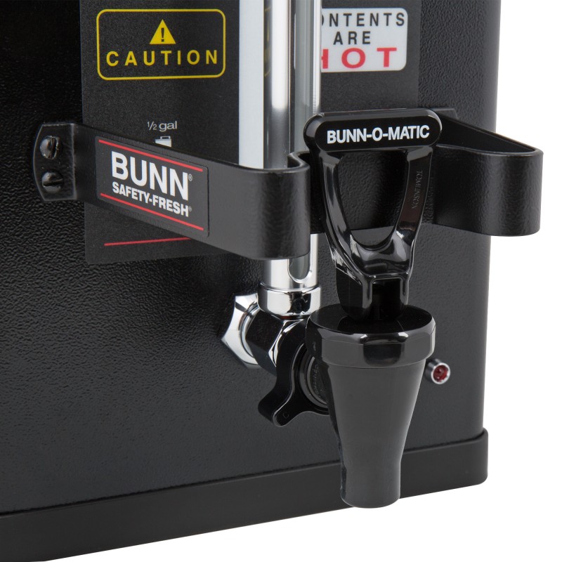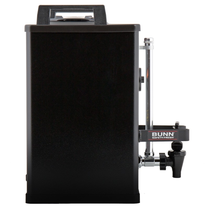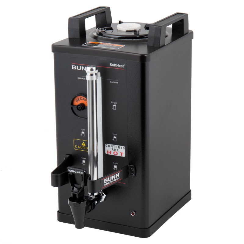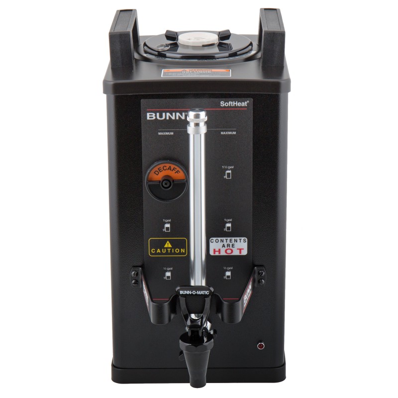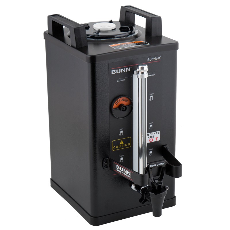 This Bunn Soft Heat 1.5 gallon portable black coffee server is compatible with all Bunn Soft Heat brewers. It features a patented Safety-Fresh brew-through lid, which allows you to brew one and one half gallons of coffee directly into the Soft Heat server.