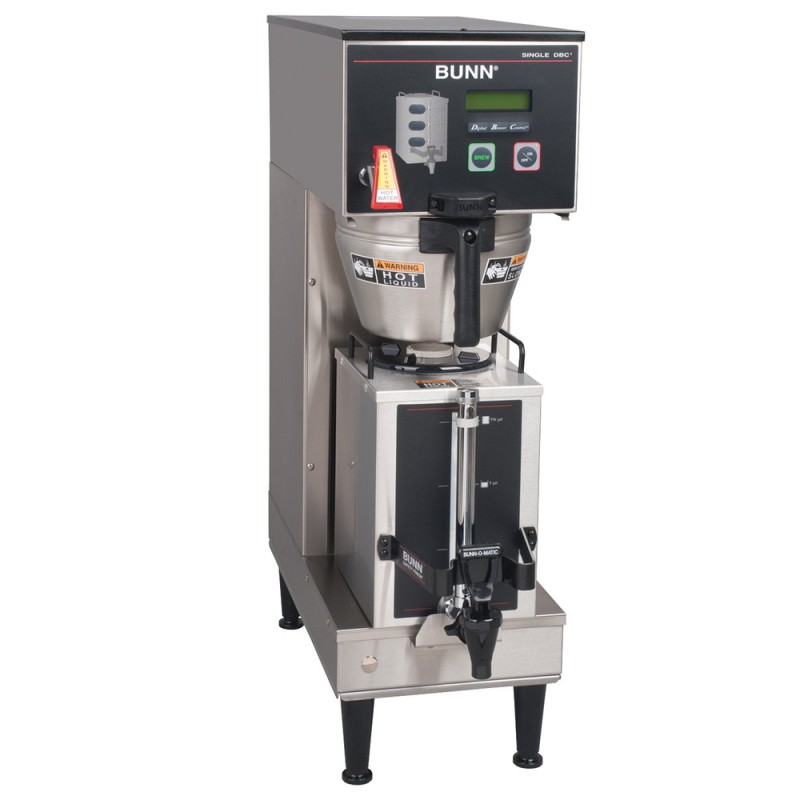 Ensure you always have hot, delicious coffee on hand with the Bunn 36100.0010 BrewWISE Single GPR DBC coffee brewer! This unit produces up to 12.5 gallons of quality coffee per hour, and its ability to store individual coffee recipes makes it easy for any employee in your commercial establishment to make a delicious brew. Convenient display alerts let you know when the freshness timer has expired and warmers are shutting off, indicating it's time to make a fresh pot!