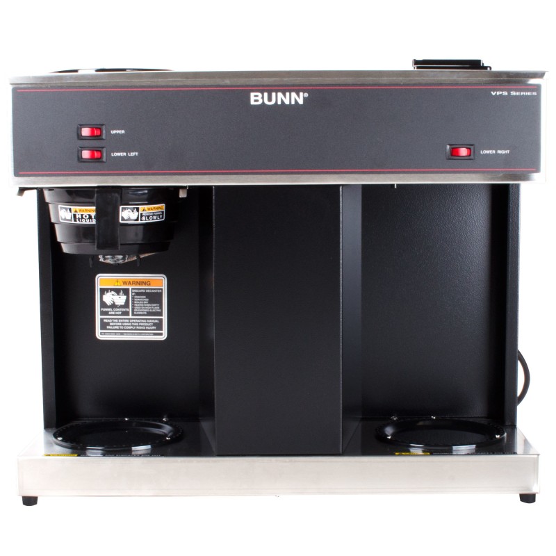 Brew up to 3.9 gallons of hot, fresh, and delicious coffee with the Bunn VPS 4275.0031 pourover coffee brewer! This coffee brewer features multiple warmers to keep up to three decanters of coffee hot and ready to serve, and it's capable of brewing enough coffee for up to 62 cups per hour. The SplashGard funnel keeps hot liquid from the operator's hands, and the stainless steel exterior provides outstanding durability. And thanks to its narrow footprint, the Bunn VPS 04275.0031 can fit in areas where space is at a premium, and its pourover design makes it conveniently portable.