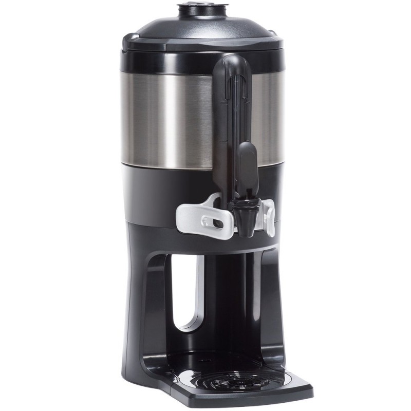 This coffee server comes with its own attached base. The self-locking stand allows for more brewing and serving options! It provides stability and convenience for your staff since it raises the faucet clearance to allow for dispensing into large cups or carafes. Plus, the base has a drip tray that catches stray splashes and drops to keep your serving area clean and safe. The drip tray is easy to remove at the end of the day for easy cleaning or to increase dispensing clearance.