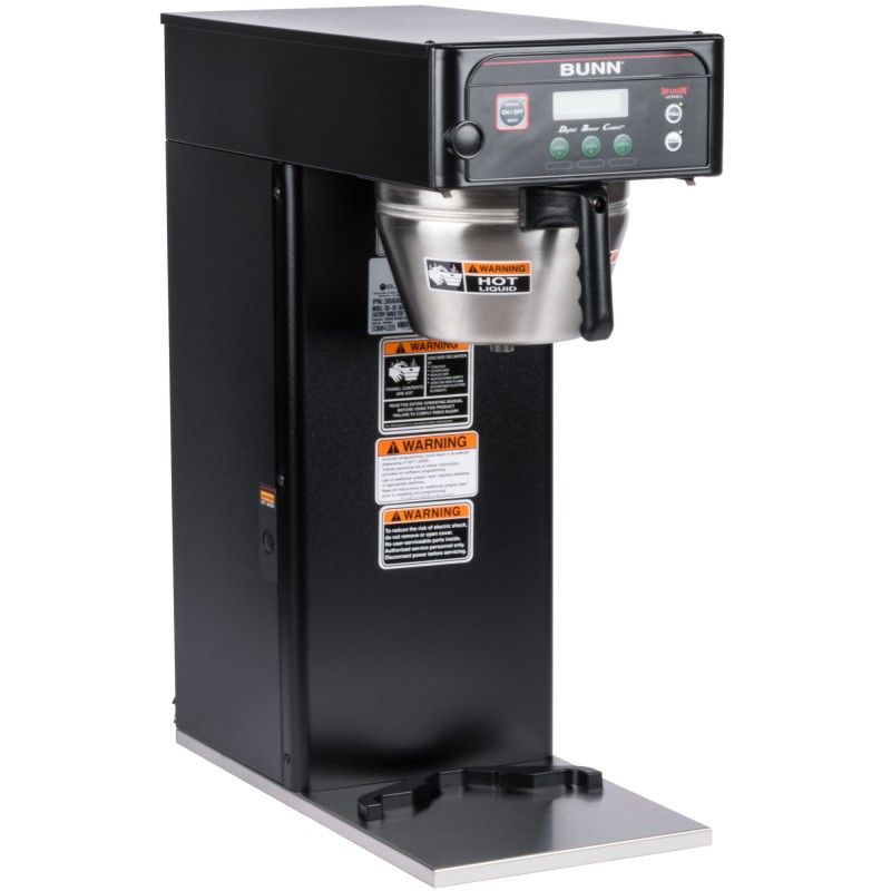 This versatile, highly customizable Bunn ICB-DV Infusion black single brewer puts the convenience of a wireless brewing system to work in your cafe, buffet, or cafeteria style restaurant. The Bunn ICB-DV Infusion single brewer can brew directly into 2.5 to 3.8 liter Bunn airpots or 1 to 1.5 gallon Bunn TF baseless servers. Three brew buttons allow you to pre-program three separate brewing profiles. Two programmable batch switches give you the option of brewing in full or half size batches.
