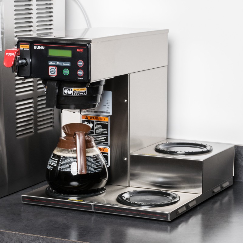 The Bunn Axiom 15-3 automatic coffee brewer can brew up to 4.2 gallons per hour into standard, 64 oz. decanters or Bunn 1GPR one gallon coffee servers! Its large 200 oz. water reservoir tank gives you the ability to brew back-to-back batches.