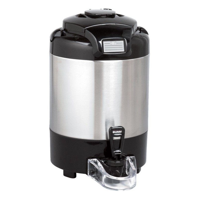 The Bunn TF 1.5 gallon ThermoFresh stainless steel digital coffee server features a patented Safety-Fresh brew-through lid, which allows you to brew 1.5 gallons of coffee directly into the server. The server is vacuum sealed to keep your coffee hot and fresh for hours.