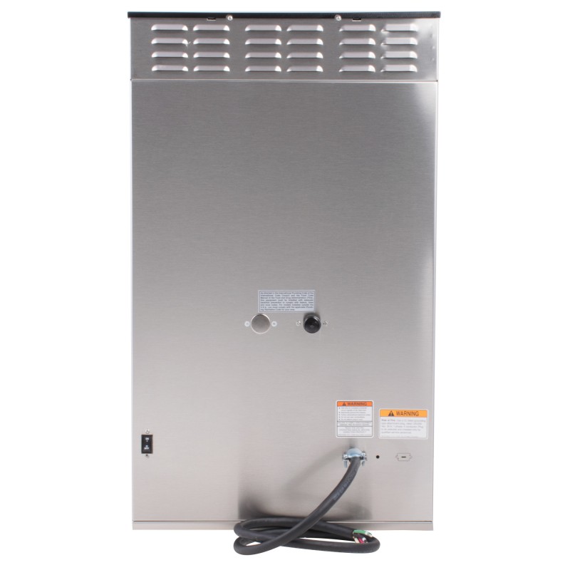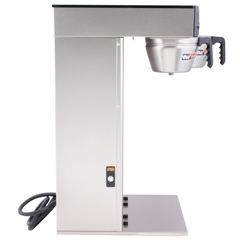 An energy saver mode helps reduce tank temperature and conserve electricity during idle periods, and the digital display can quickly switch between English and Spanish for complete programming control. And thanks to its stainless steel exterior, this brewer has outstanding durability. It requires a 120/240V electrical connection and comes with a cord and no plug.