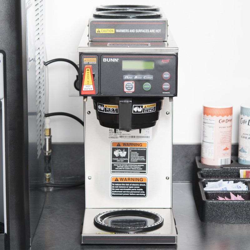 The Bunn Axiom DV-3 automatic coffee brewer can brew up to 7.5 gallons per hour into standard, 64 oz. decanters or Bunn 1GPR one gallon coffee servers! Its large 200 oz. reservoir water tank gives you the ability to brew back-to-back batches.