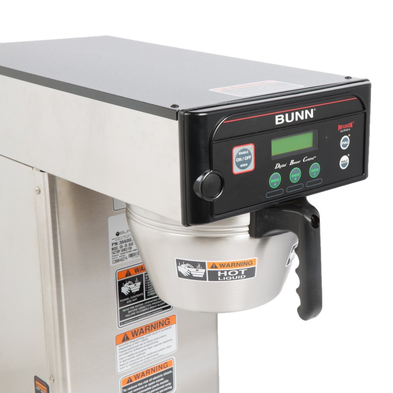 Brew 189 8 oz. cups of coffee per hour with this Bunn 36600.0016 ICB low profile infusion coffee brewer! This brewer is ideal for quick service restaurants, healthcare facilities, colleges and universities, convenience stores and more. A large 3 gallon tank offers back-to-back brewing capability while a low profile design saves important counter space. Three brew buttons allow for three different brewing profiles, making this machine extremely flexible. Programmable full batch and half batch buttons provide even greater versatility and allow accurate portion control. This machine features easy-to-read digital displays and controls and includes a hot water faucet kit that can be mounted on the side of the trunk or upper control panel of the machine. Cold brew lock out capability prevents brewing when the water temperature is below the correct brewing temperature to preserve proper quality.