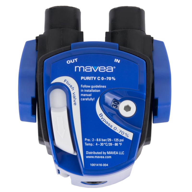 Designed specifically for espresso applications, this Bunn 45961.0000 C300 Mavea water conditioner system features a specialized blend of resin that effectively reduces your water's hardness and alkalinity, as well as unpleasant taste and odor, to give you the best product possible. It has a variable bypass head that simultaneously shuts off and vents water, allowing for simple and trouble-free cartridge change-outs. It has a 1,057 gallon capacity and 5.0 micron rating.