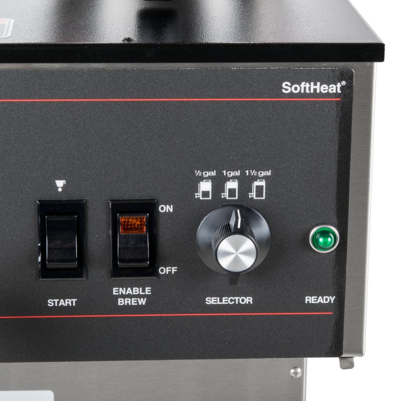This Bunn 27900.0001 dual Soft Heat Brewer gives you complete control over the portion size and quality of all your most popular brews! Patented Soft Heat technology allows you to warm the contents of your server from 175 to 190 degrees Fahrenheit and automatically shuts off the heater once it has reached your desired temperature, helping to prevent over-brewing or scalding for a more consistent product. Three preset timed cycles, meanwhile, allow you to brew in 0.5, 1, or 1.5 gallon batches to help control portion sizes for various times of the day.