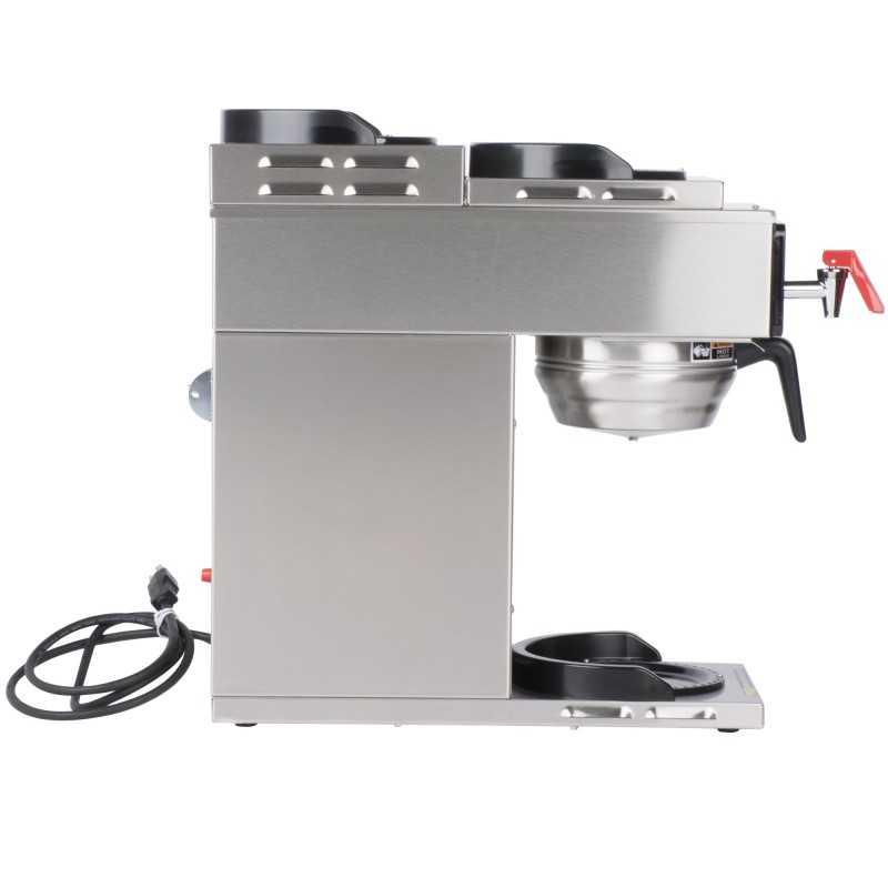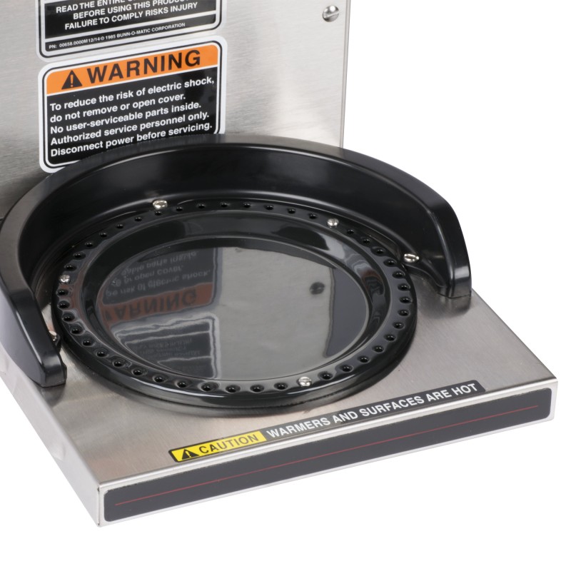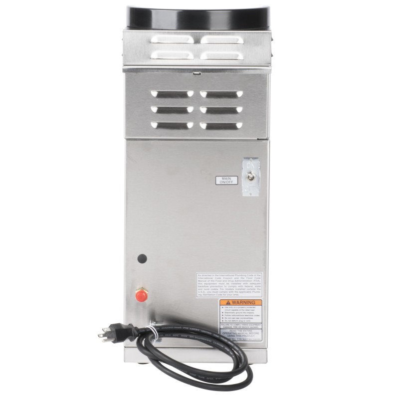 Thanks to the included BrewWise coffee server management technology, the machine can track the age of brewed coffee and automatically shut off warmers when it's time to make more or when decanters are empty. The warmers work with glass decanters or thermal carafes featuring an RFID chip (both sold separately). For maximum safety, the SplashGard funnel directs hot liquids away from the operator's hand to reduce burns. This brewer automatically adjusts to varying water pressures, calculates flow rate, and provides easy-to-access front of machine settings to monitor brew level and tank temperature.