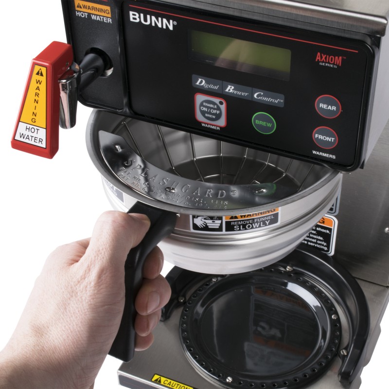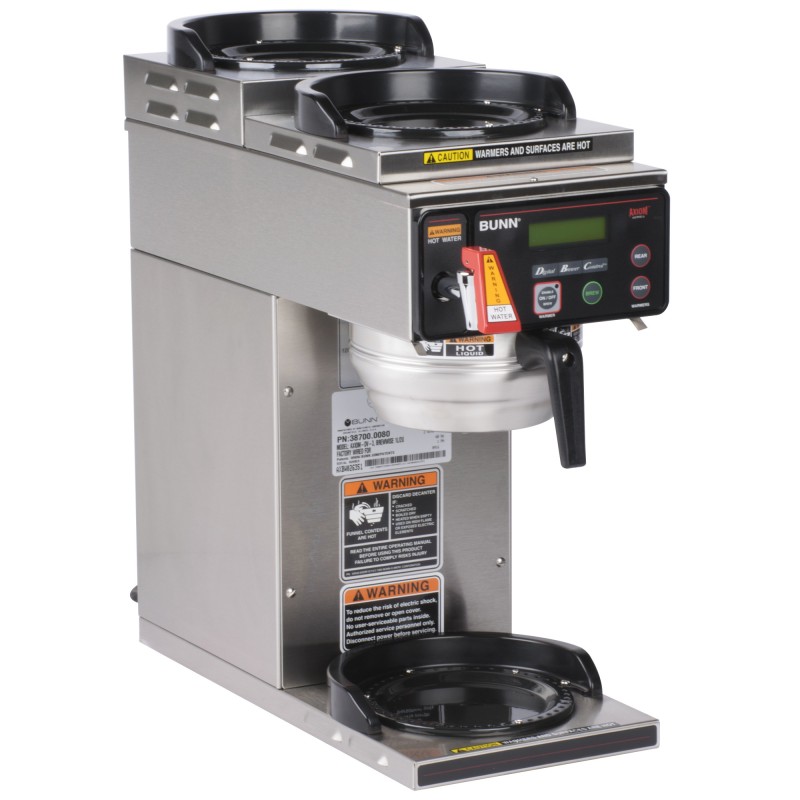 Ensure you always have a supply of fresh, hot coffee on hand with the Bunn 38700.0080 Axiom-DV-3 BrewWISE 12 cup coffee brewer! Its large, 200 oz. tank can handle back-to-back brewing so you can constantly have a fresh pot brewing while up to two others warm. During brewing, digital temperature control and programmable pre-infusion help to create a delicious cup every time!