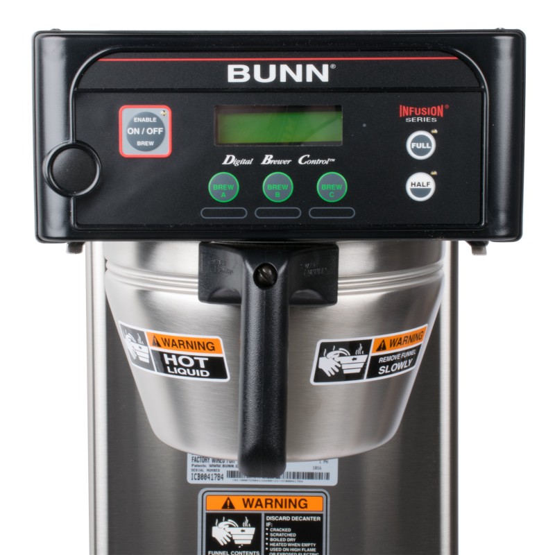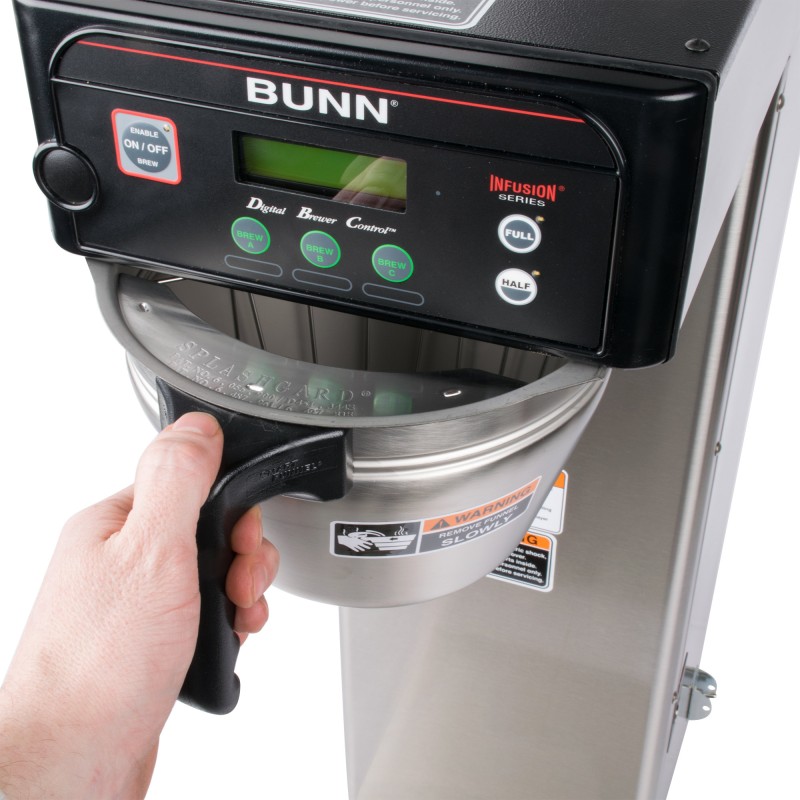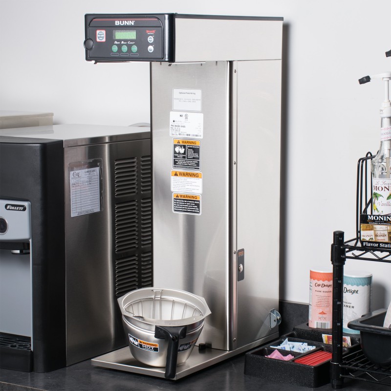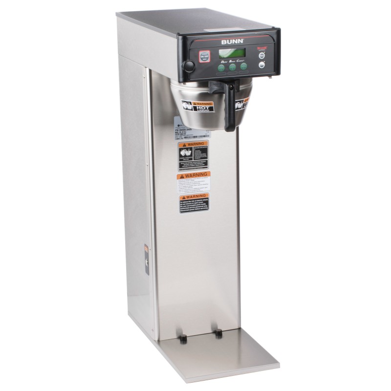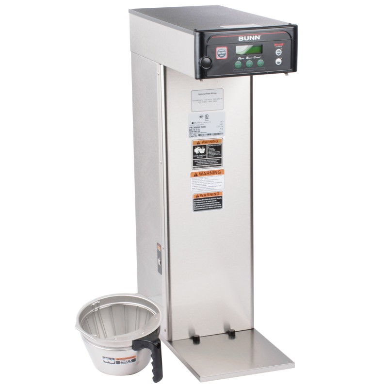 The Bunn ICB-DV Infusion tall single brewer can brew directly into Bunn airpots or 1 and 1.5 gallon Bunn TF servers with bases. Three brew buttons allow you to pre-program three separate brewing profiles. Programmable batch switches give you the option of brewing in full or half size batches. The versatile, highly customizable Bunn ICB-DV Infusion stainless steel tall single brewer puts the convenience of a wireless brewing system to work in your cafe, buffet, or cafeteria style restaurant.