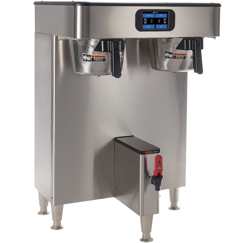 Highly versatile, this automatic coffee brewer features a 4.3" color touchscreen control panel so you can customize your brewing cycles and recipes. It has a digital display in English, Spanish, or French. An energy-saver mode reduces tank temperatures during idle periods to help you reduce wasted energy. It's also USB programming capable to best serve the needs of your business. A separate hot water spigot located in the center of the unit makes it easy and convenient to make tea and other hot beverages to-order in your cafe, restaurant, or hotel.