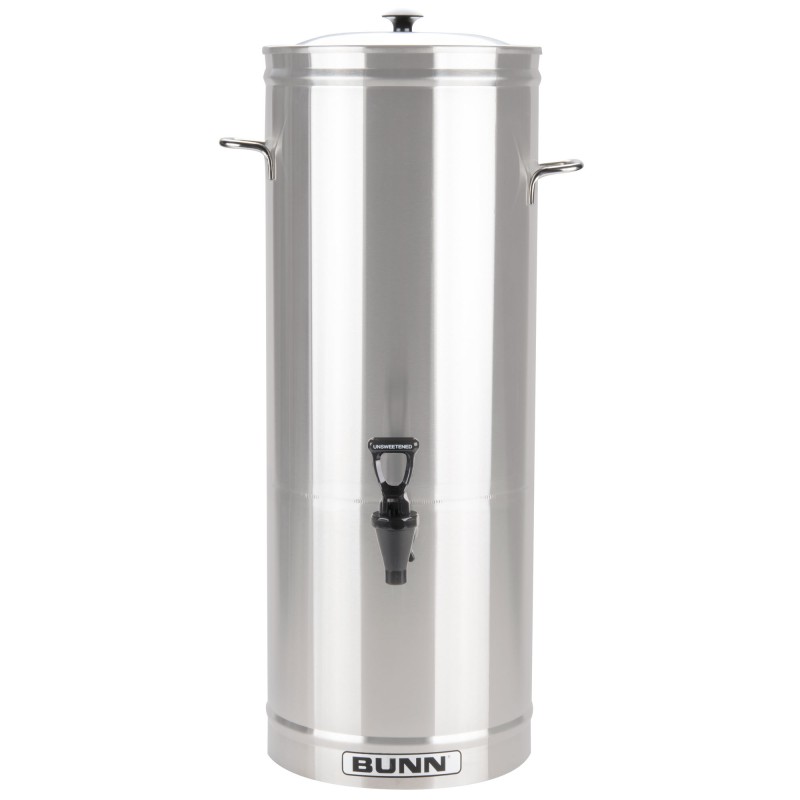 This Bunn TDS-5 five gallon iced tea dispenser features a durable, stainless steel lift and seal lid, which allows you to brew five gallons of iced tea directly into the dispenser. It is compatible with Bunn TU5 series iced tea dispensers. Welded handles provide easy transport from your brewer to self service stations or servers areas.