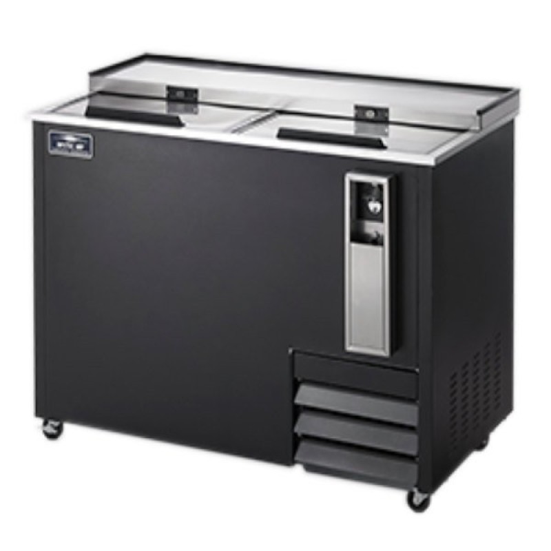 This unit is also designed for outstanding durability to ensure that it withstands service through even your busiest days and nights. It features a black powder coated steel exterior and a stainless steel interior. 2 stainless steel lids open and close with ease, making for easy drink retrieval. Because they lock, the lids also secure your beverage selection, making sure that your supply is always safe.