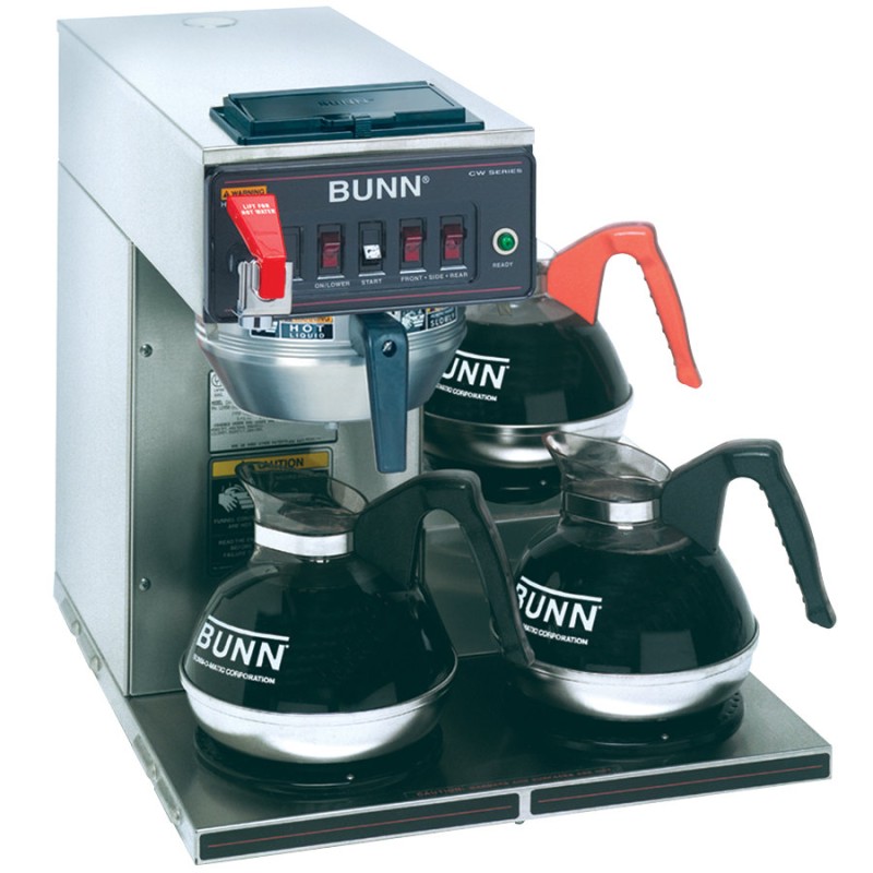 The Bunn CWTF-DV automatic 12 cup coffee brewer with 3 lower warmers can brew up to 7.5 gallons per hour into 64 oz. decanters. Its low-profile design, only 17" high, allows you to place the brewer under cabinets, making the Bunn CWTF-DV automatic coffee brewer with three lower warmers great for family restaurants, cafes, or diners with limited countertop space.